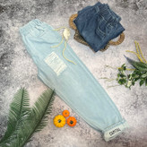 شلوار جین مام استایل جنس پارچه ترک در دو رنگ آبی و یخی