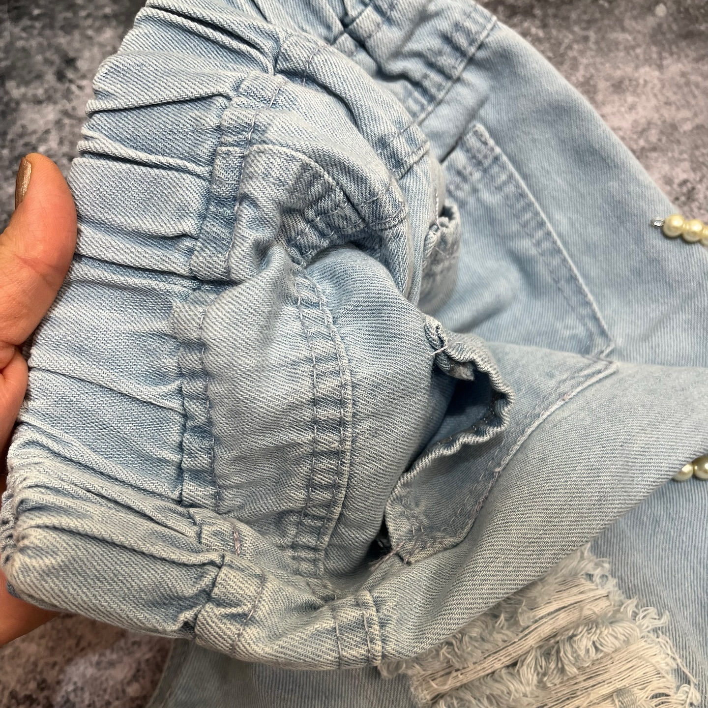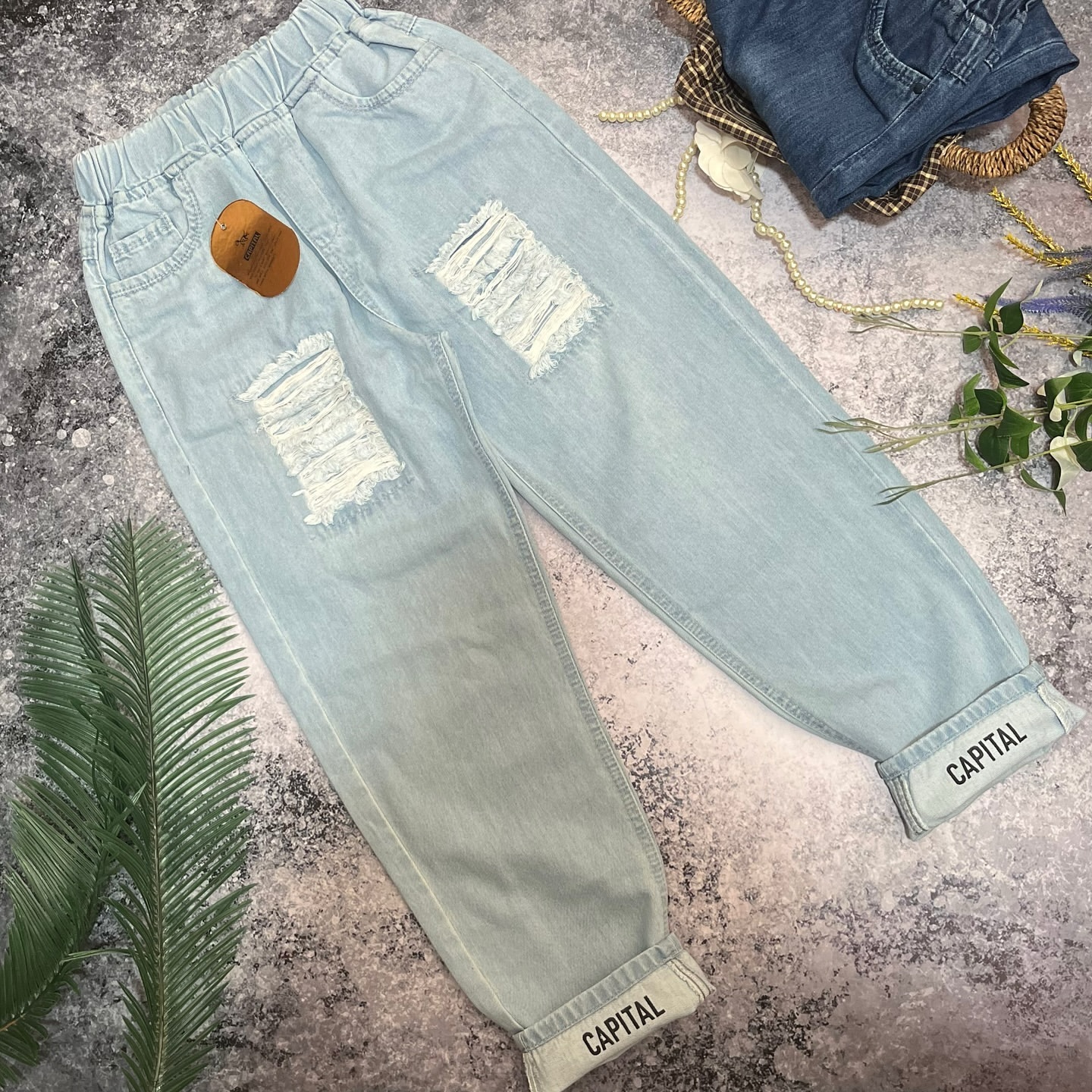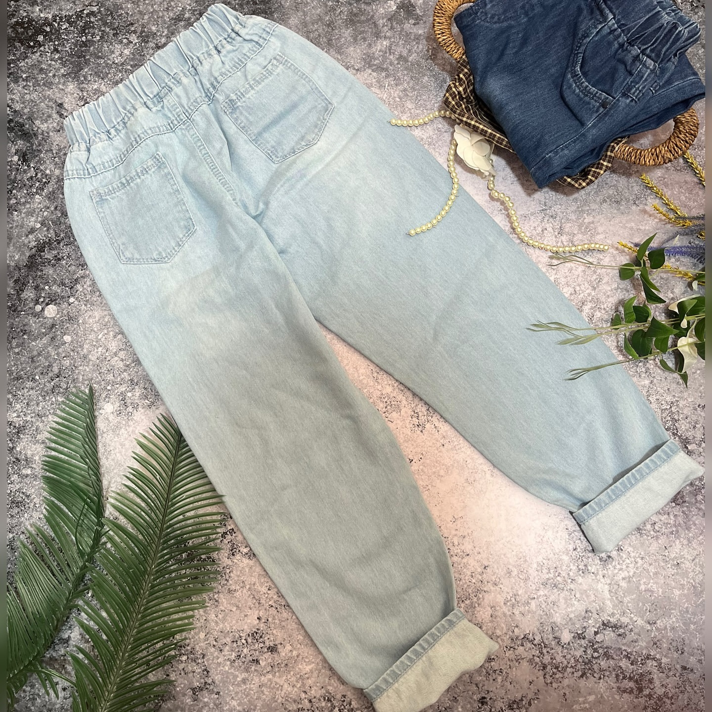 شلوار جین مام استایل جنس پارچه ترک در دو رنگ آبی و یخی