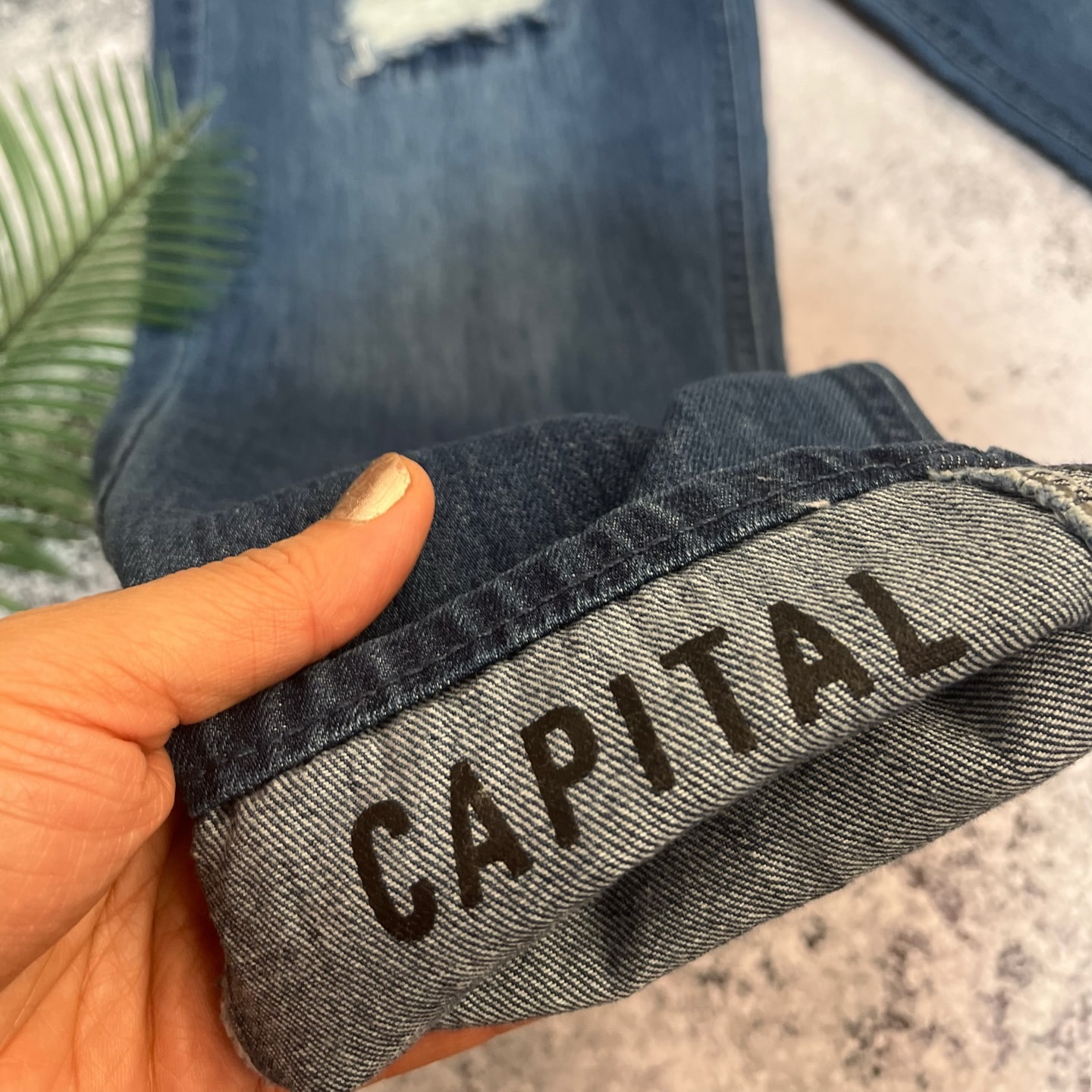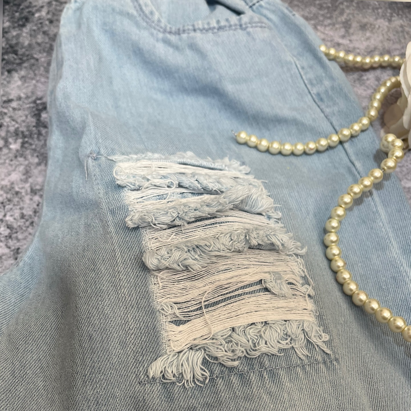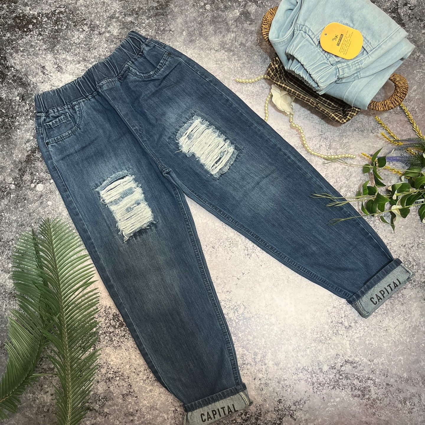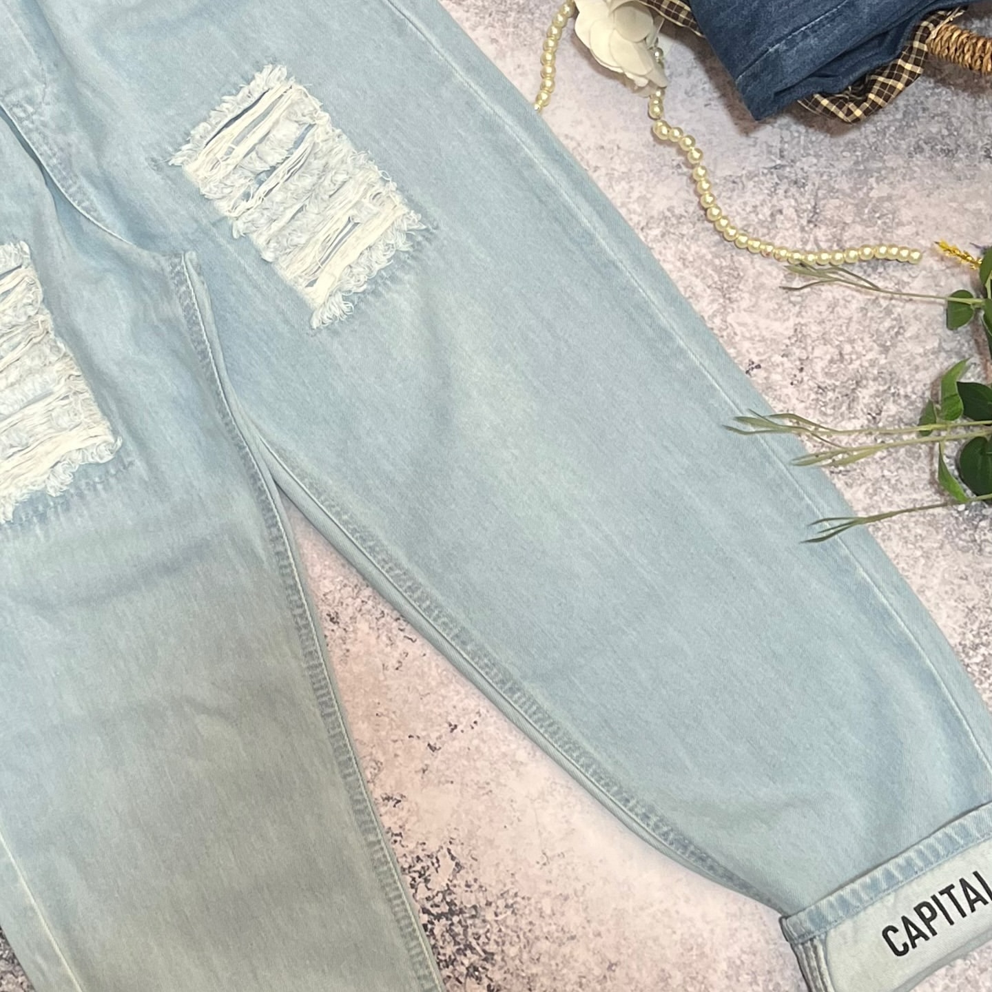 شلوار جین مام استایل جنس پارچه ترک در دو رنگ آبی و یخی