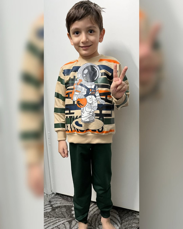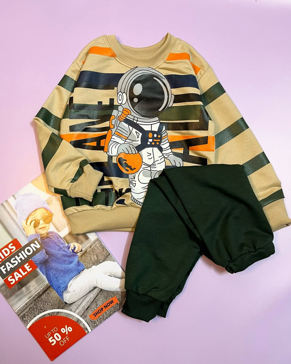 بلوز شلوار پسرونه آستین بلند طرح فضانورد